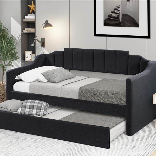 Upholstered Twin Daybed with Trundle,Black Upholstered Twin Daybed with Trundle,Black Upholstered Twin Daybed with Trundle,Black