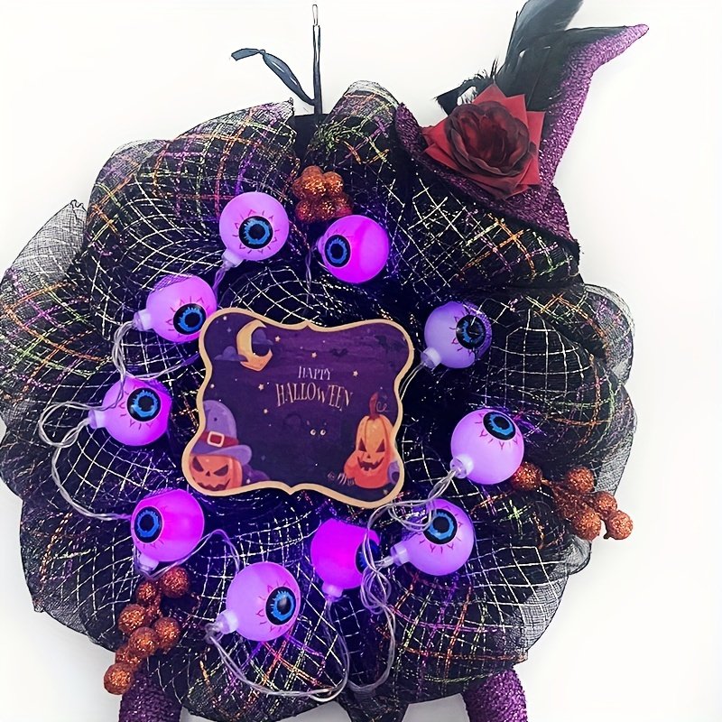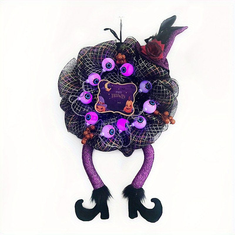 1pc Halloween Purple Wreath With Eye Beads Witch Hat & Leg Wreath Glow LED