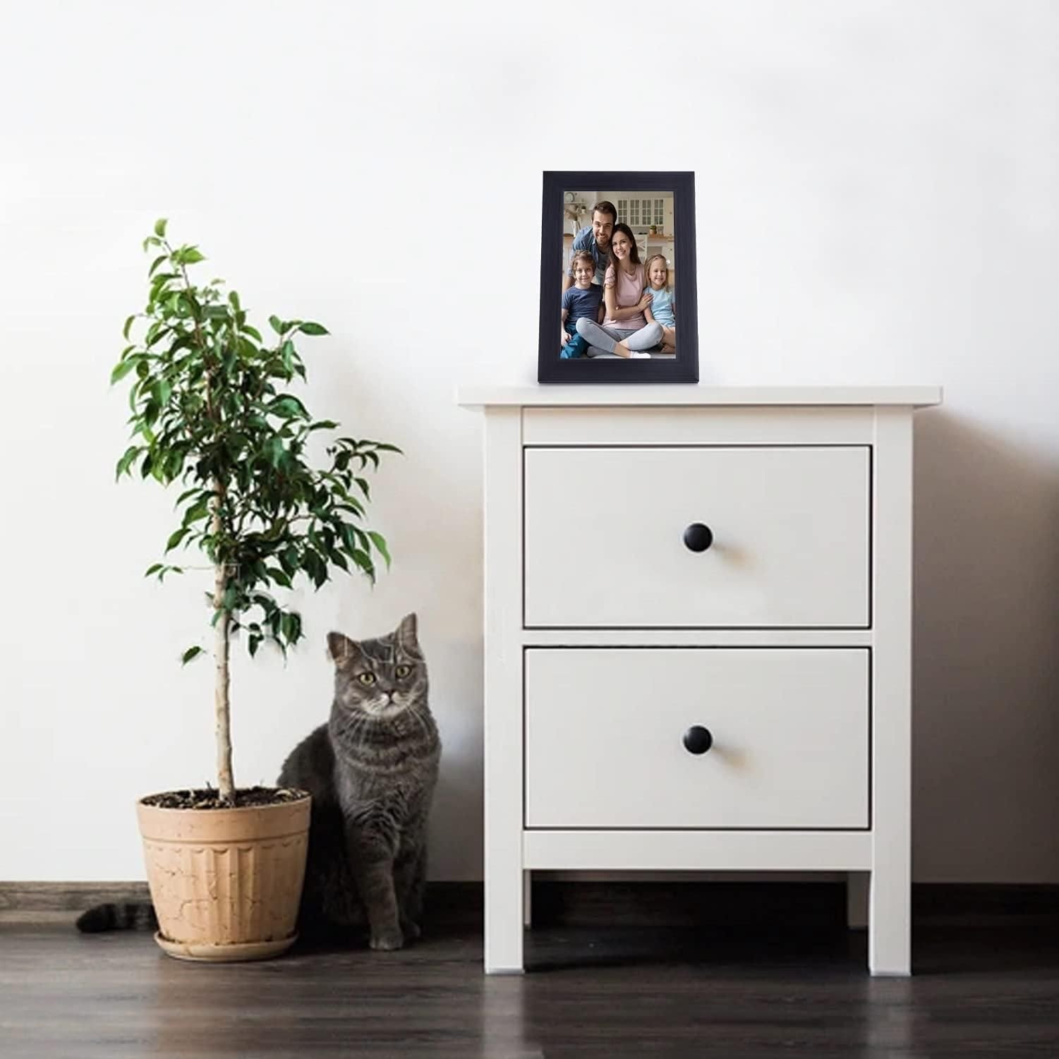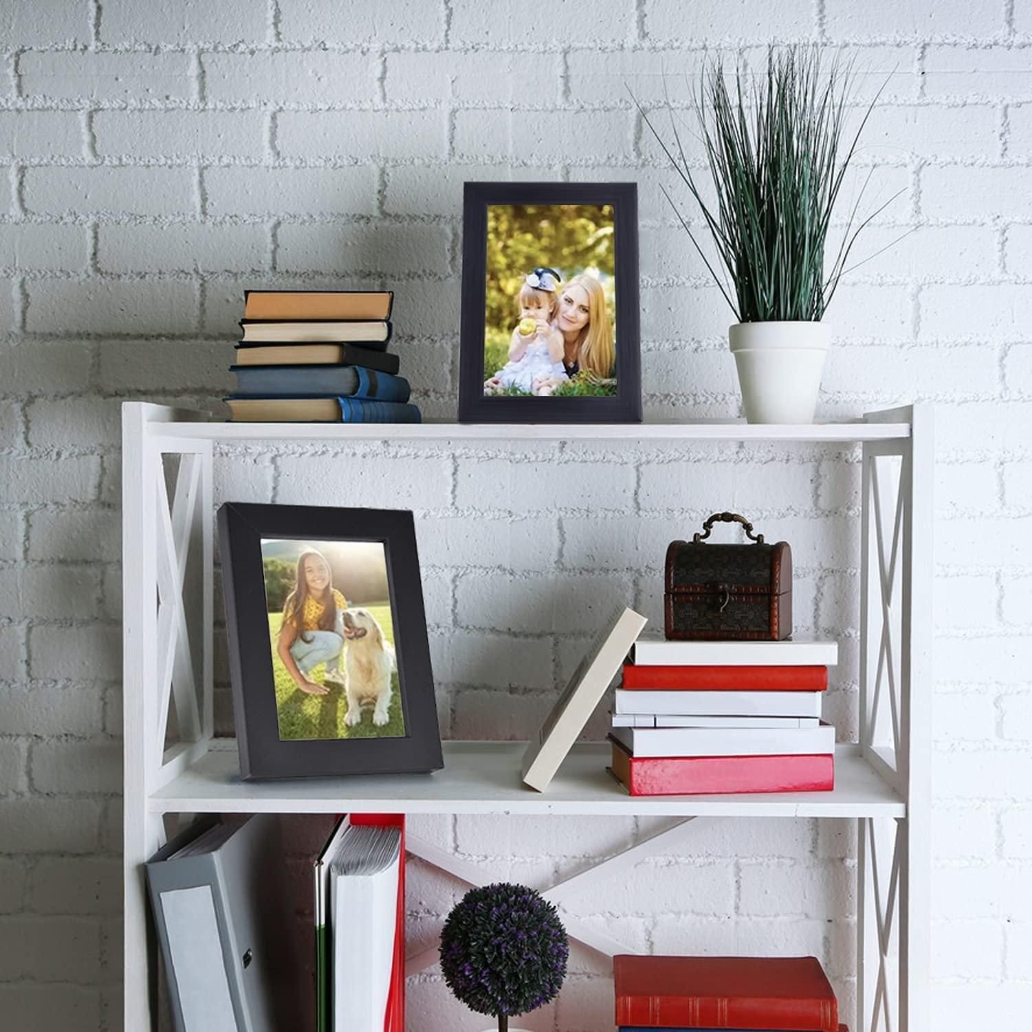 1. [ Material & Size ] : This 4x6picture frame display 3.75x5.7 picture; which is an ideal decorative frame for pictures or printing. The frame is made of MDF. It weighs 0.15 pounds of each frame; easy to operate; save you worry and effort; and can decorate your space.