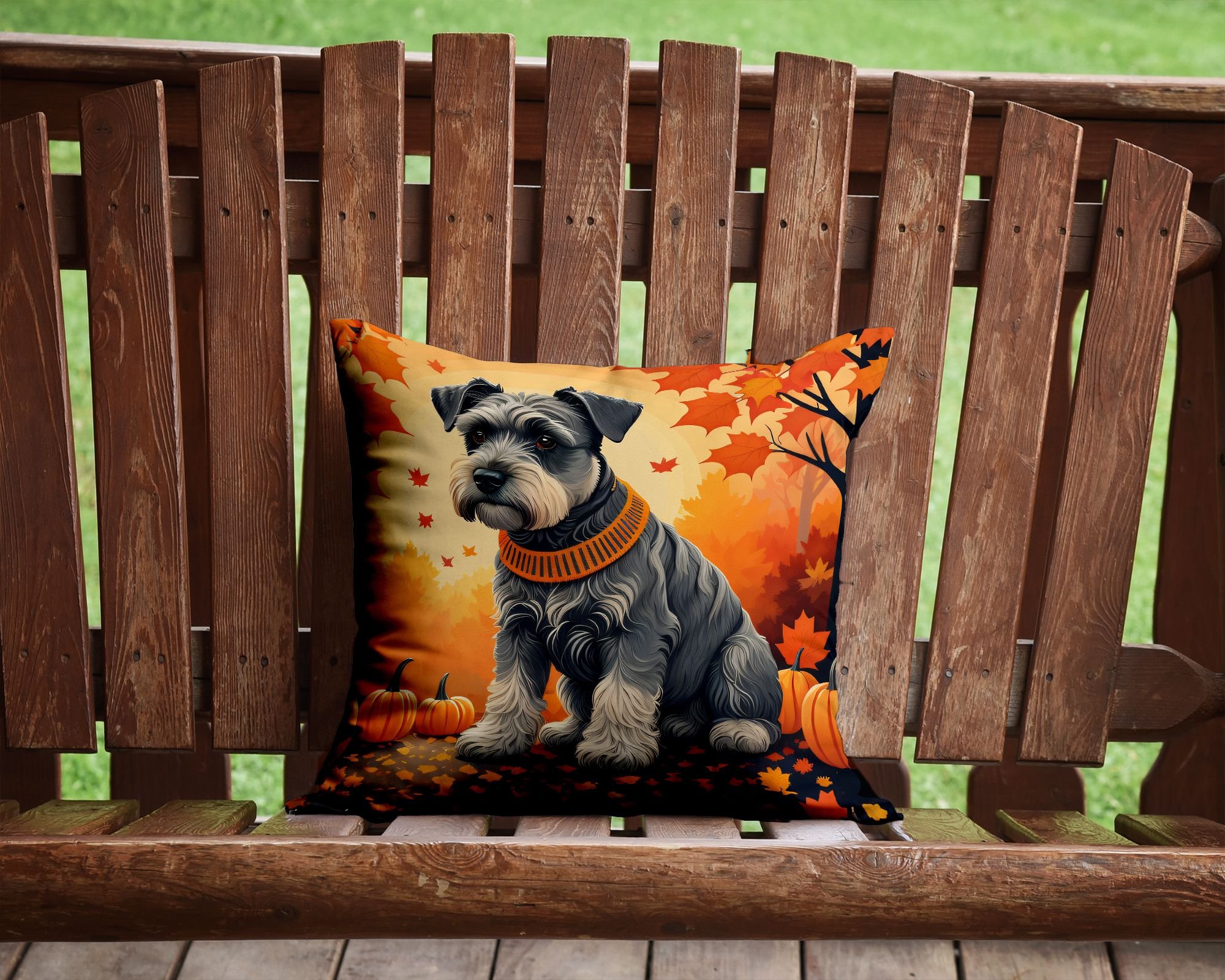Schnauzer Fall Throw Pillow Machine Washable, Indoor Outdoor Decorative Pillow for Couch, Bed or Patio, 14Hx14W