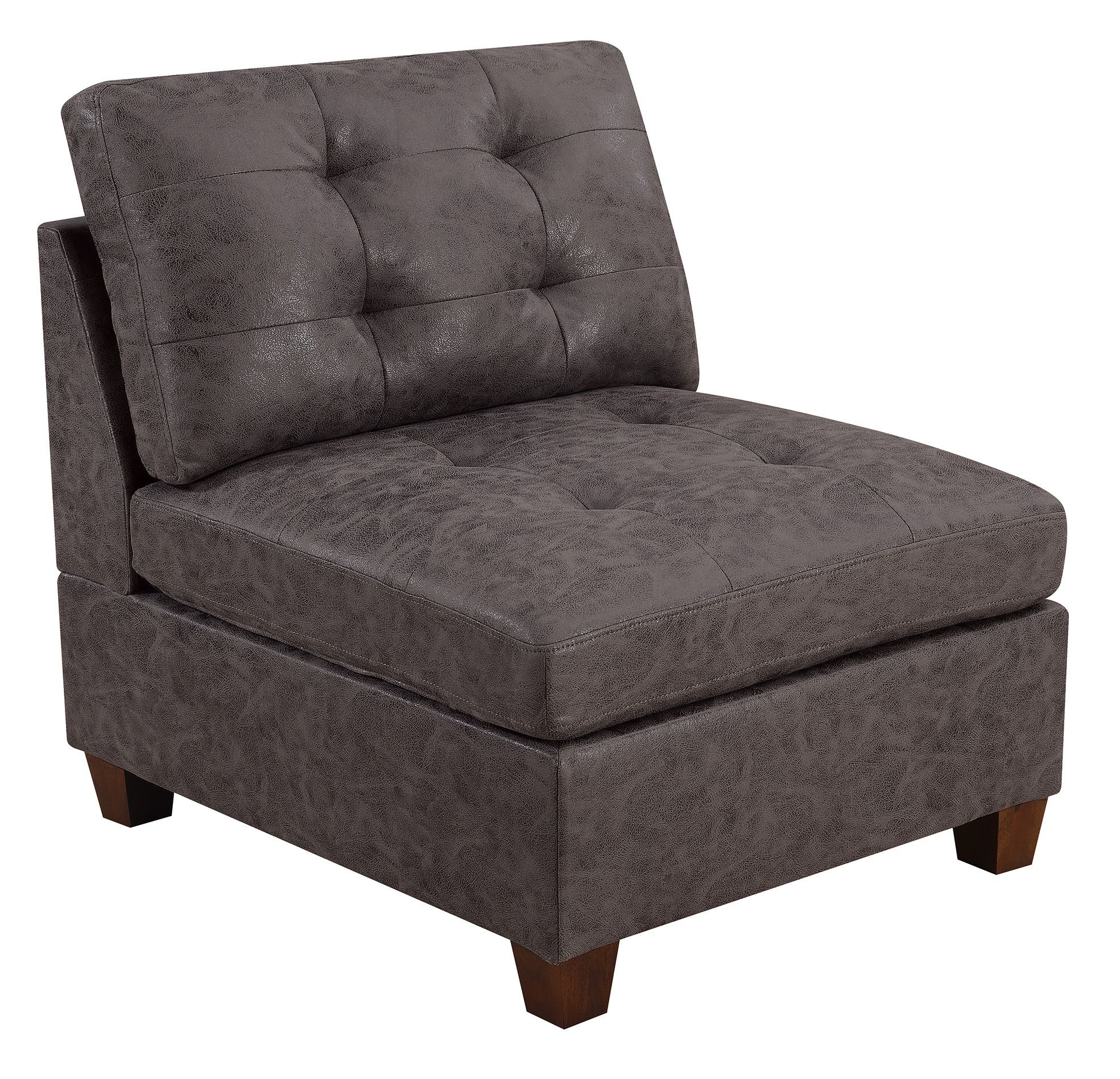 Living Room Furniture Tufted Armless Chair Dark Brown Breathable Leatherette 1pc Cushion Armless Chair Sofa Wooden Legs