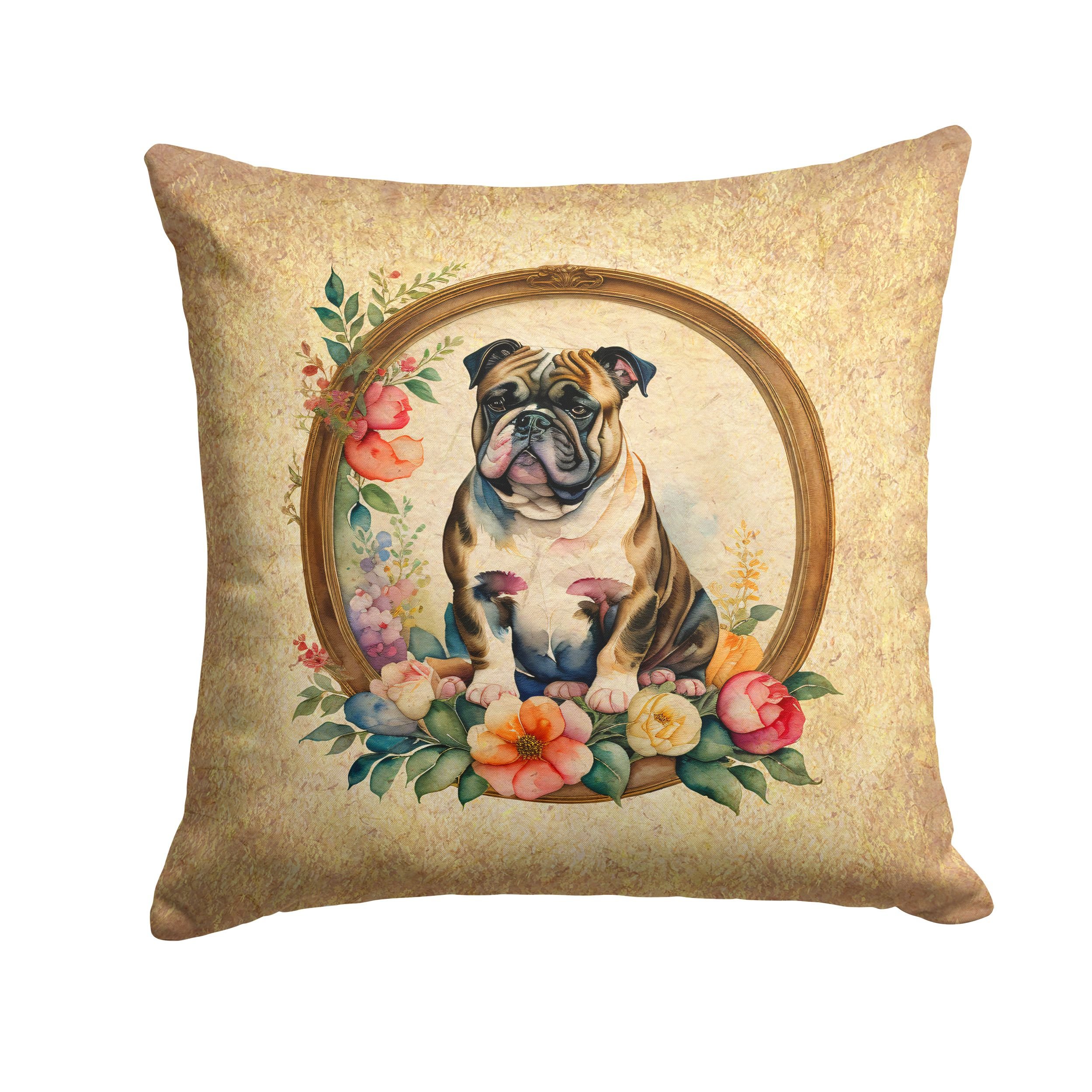 Home > English Bulldog and Flowers Throw Pillow Machine Washable, Indoor Outdoor Decorative Pillow for Couch, Bed or Patio, 14Hx14W