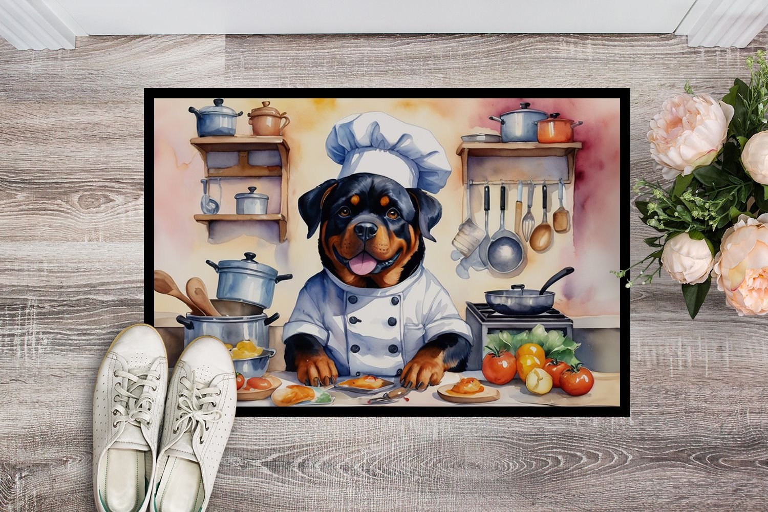 Home > NEW Rottweiler The Chef Doormat Front Door Mat Indoor Outdoor Rugs for Entryway, Non Slip Washable Low Pile, 18H X 27W