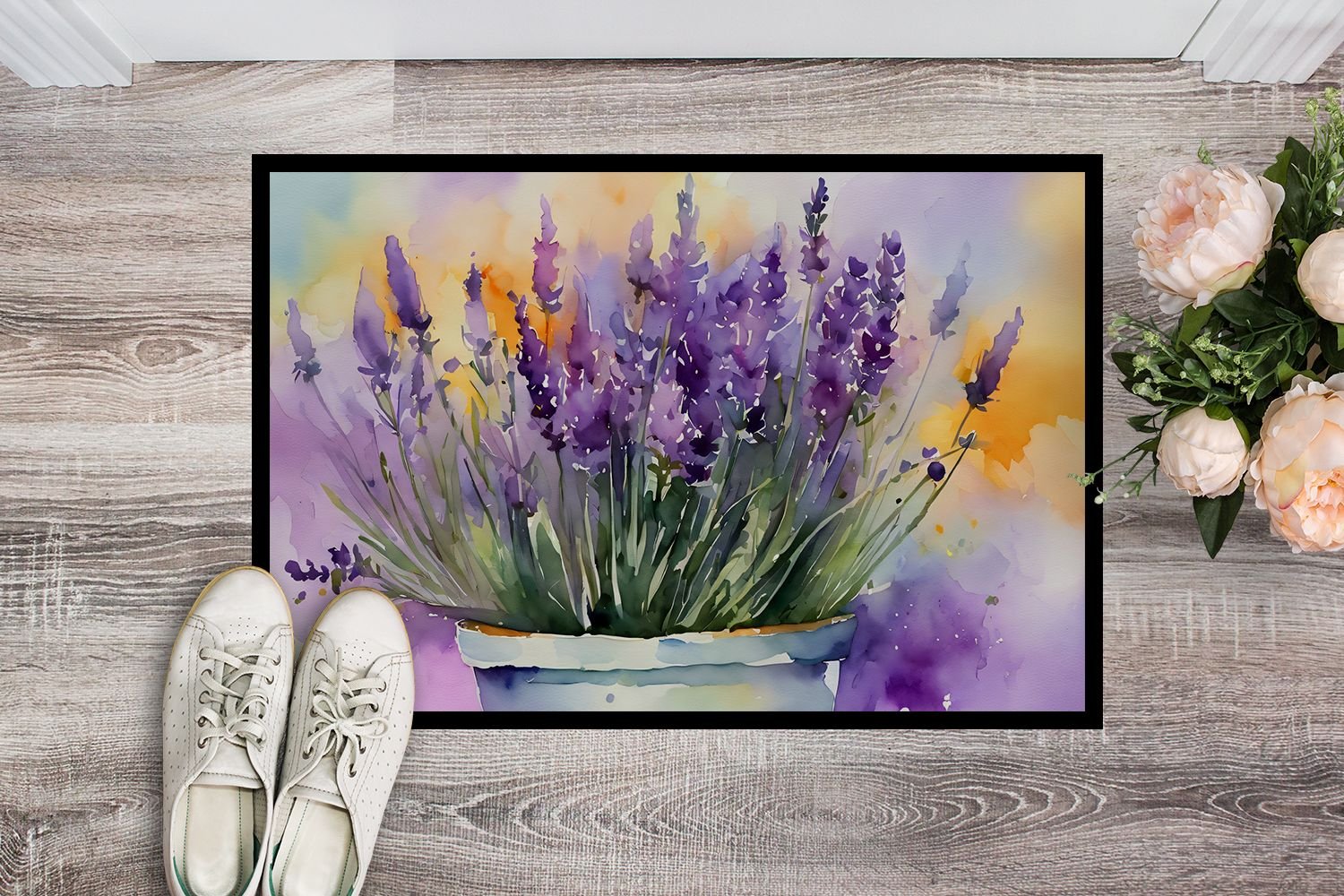 Home > NEW Lavender in Watercolor Doormat Front Door Mat Indoor Outdoor Rugs for Entryway, Non Slip Washable Low Pile, 18H X 27W