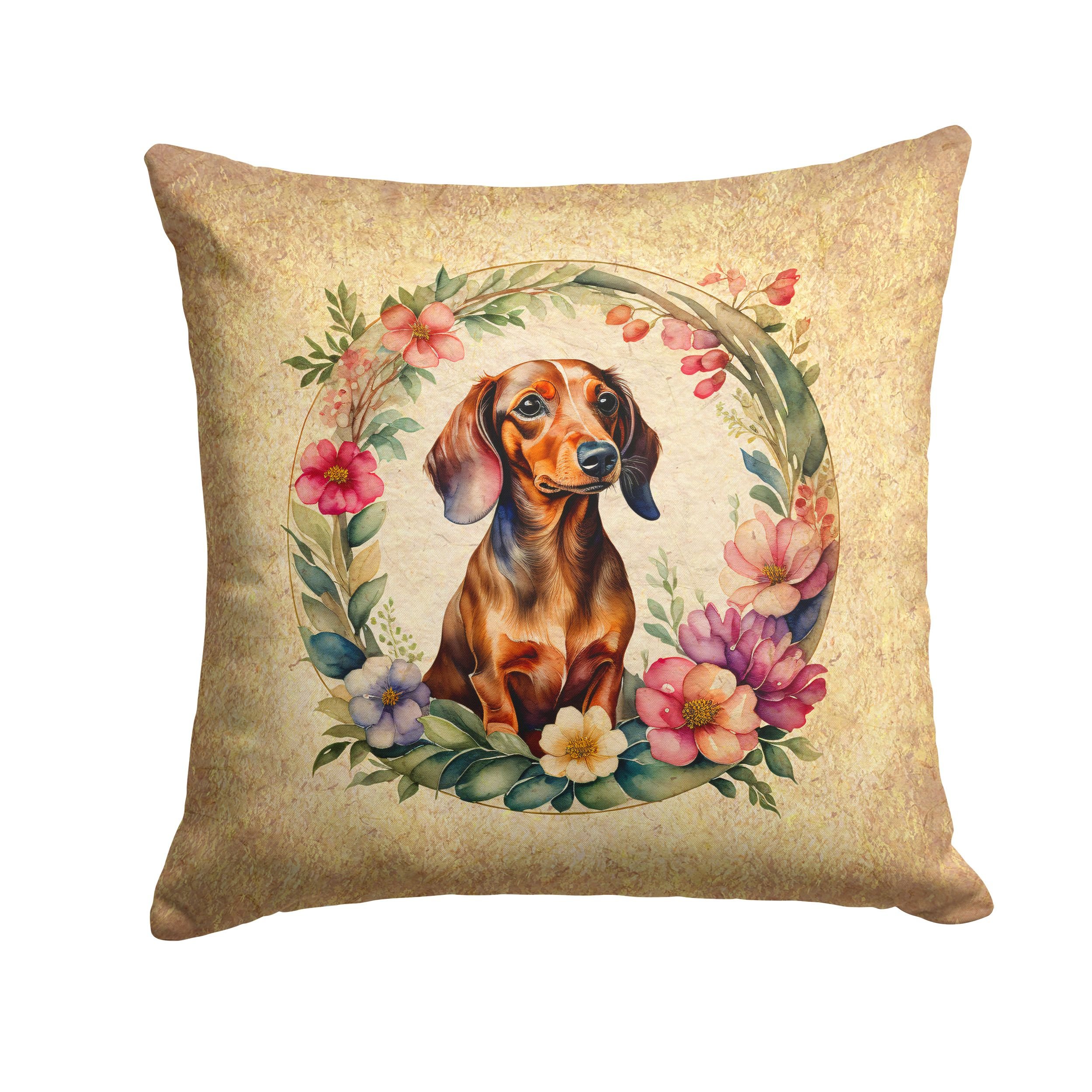 Home > Dachshund and Flowers Throw Pillow Machine Washable, Indoor Outdoor Decorative Pillow for Couch, Bed or Patio, 14Hx14W