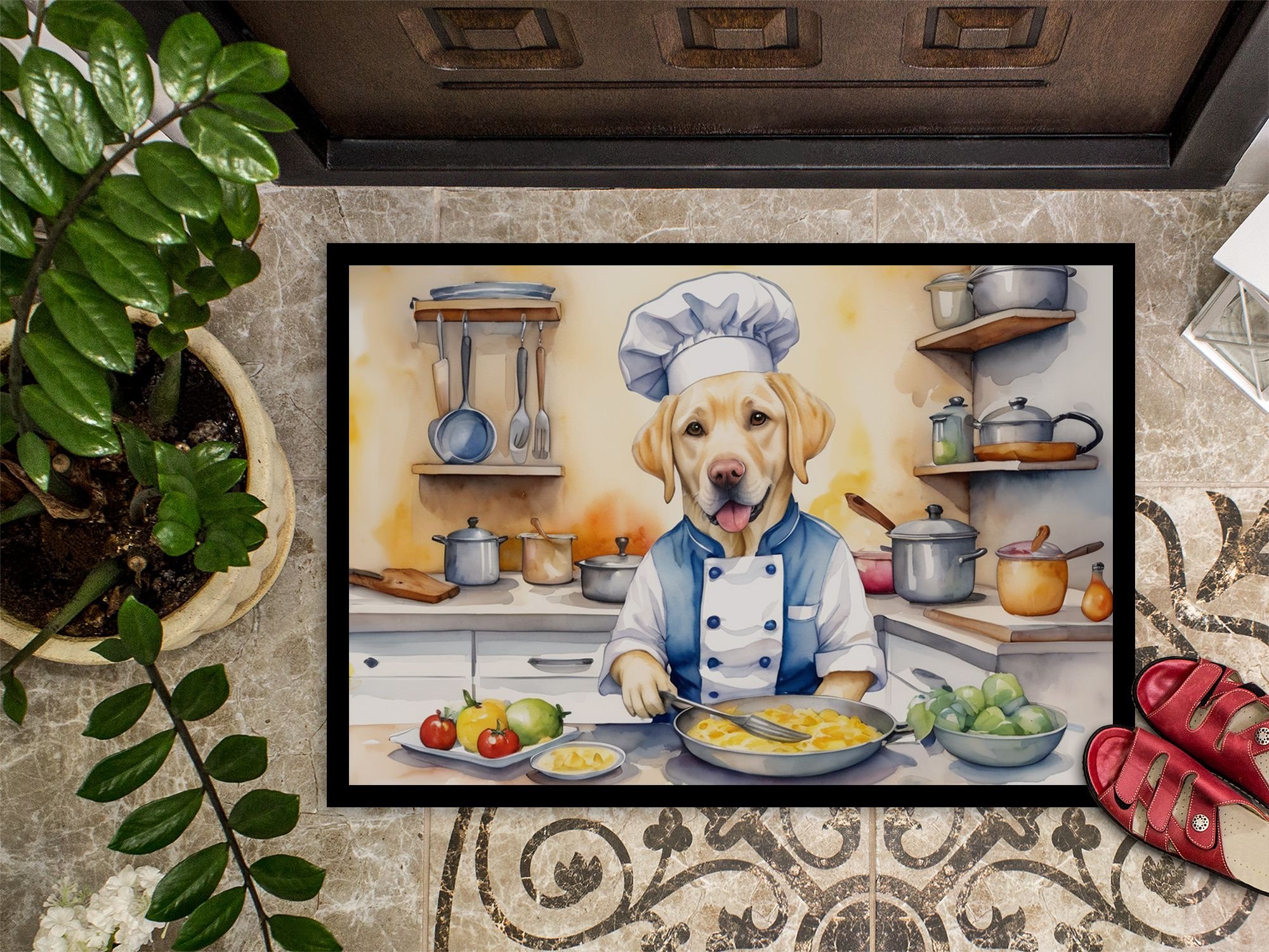 Home > NEW Yellow Labrador Retriever The Chef Doormat Front Door Mat Indoor Outdoor Rugs for Entryway, Non Slip Washable Low Pile, 18H X 27W