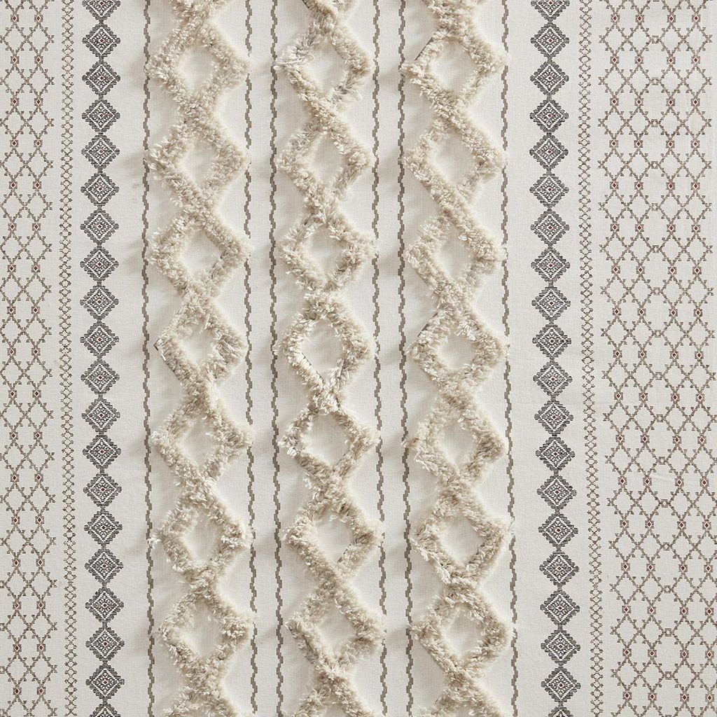 The Imani Cotton Printed Window Panel with Chenille Stripe and Lining offers a chic and casual update to your home. This ivory window panel features a geometric print with a tufted chenille stripe trim, for a textured artisanal look and feel. A lightweight white cotton lining on the reverse softly filters light, while providing better drapability and added privacy. In addtition, this 100% cotton curtain panel is also OEKO-TEX certified, meaning it does not contain any harmful substances or chemicals for the best in quality comfort and wellness. Each panel is finished with a rod pocket top for easy hanging, and back tabs for a more clean and tailored finish. This window panel is sold as a single and 2 window panels must be purchased to cover any standard size window. Complete the look with coordinating bedding sets and bath decor, available and sold separately.