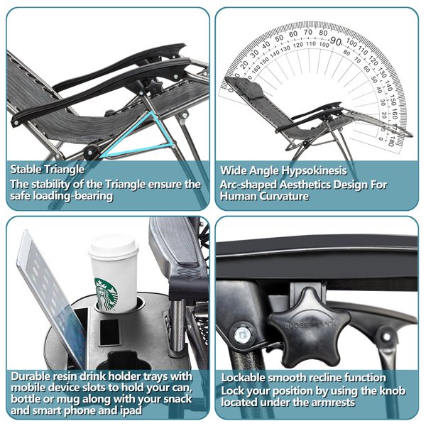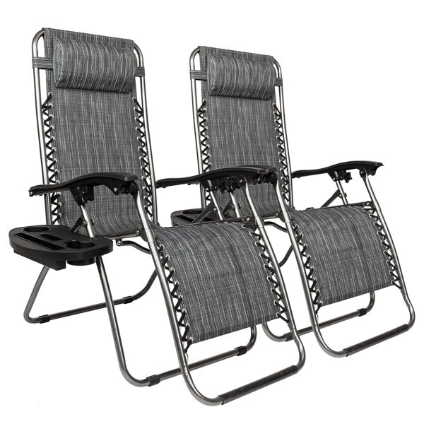 These anti-gravity chairs set of 2 are perfect for relaxing on the patio, at the beach or reclining outdoors in the yard. Designed with comfort in mind, these reclining lounge chairs are made from all-weather fade-resistant textilene sling fabric. The bungee cords that connect the textilene seat to the sturdy steel frame help to enhance the comfort and function of the chair.