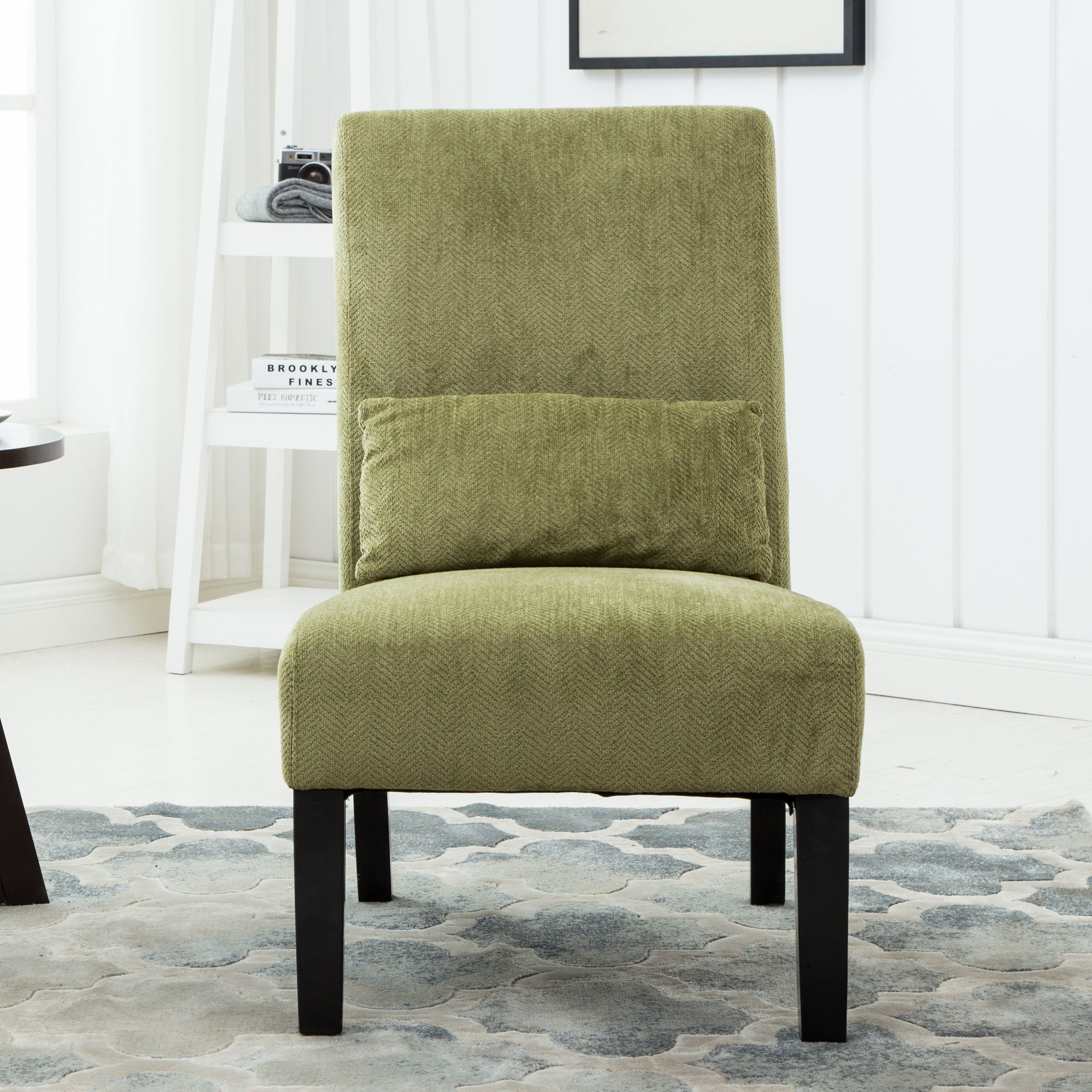 Pisano Contemporary Chenille Fabric Armless Accent Chair with Pillow, Green