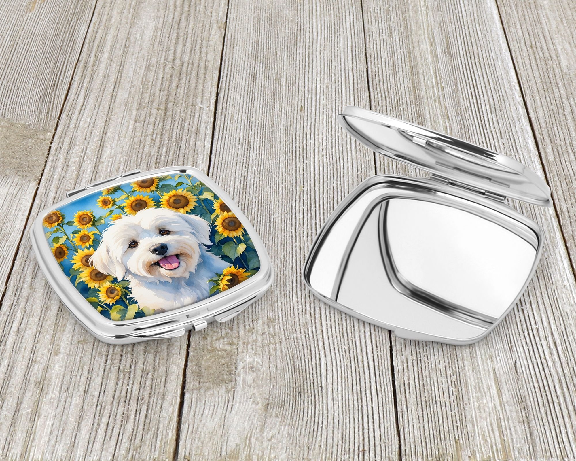 Home > Coton de Tulear in Sunflowers Compact Mirror Decorative Travel Makeup Mirror for Women Girls Gifts Pocket Makeup Mirror Folding Handheld