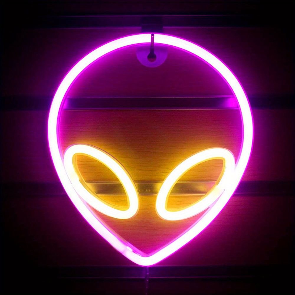Home > 1pc Alien Shape LED Neon Sign, USB & Battery Powered Novelty Neon Mini Night Light
