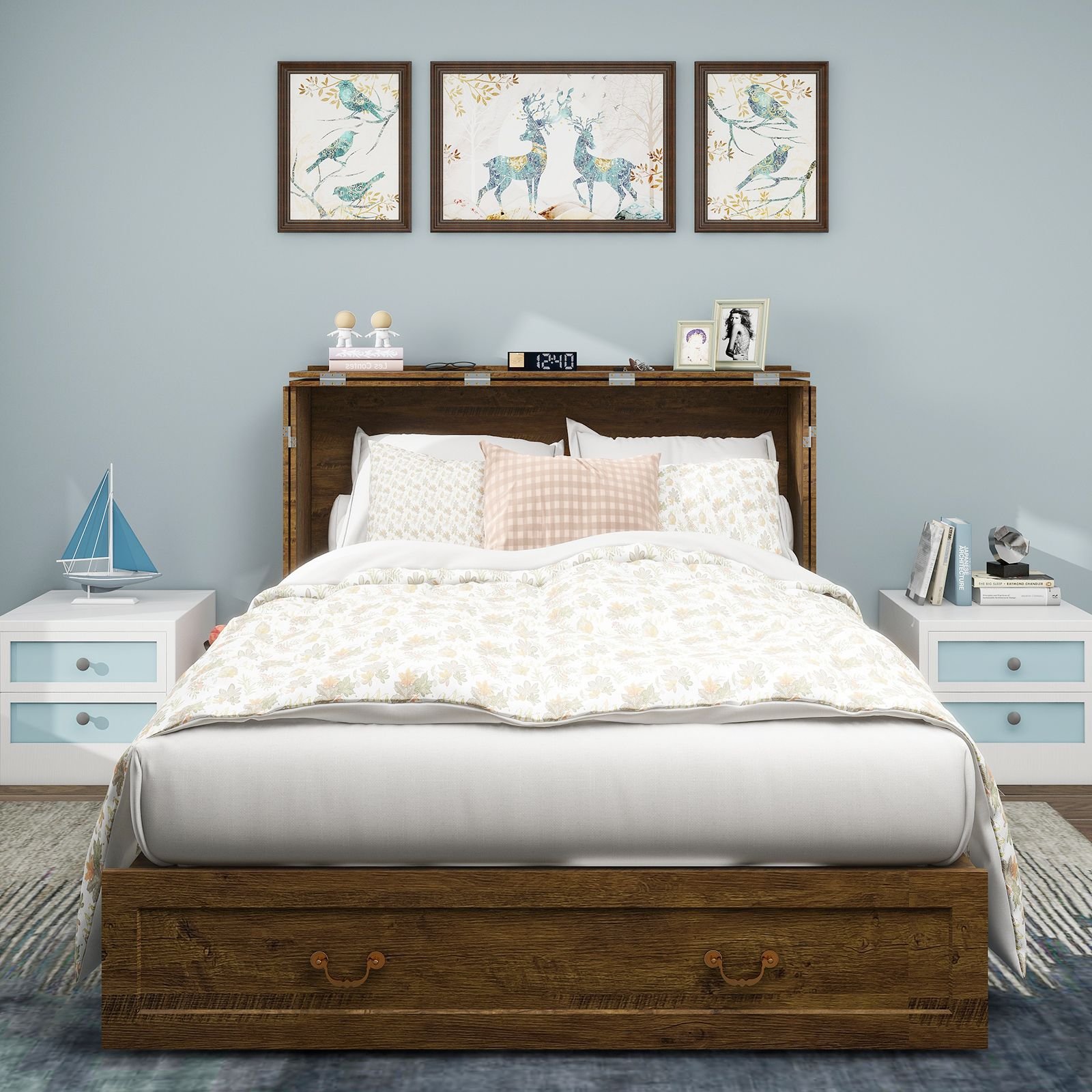 3.Efficient Design -The design of this murphy guest bed prioritizes space saving, which is perfect for daily use, especially in a small apartment or studio, providing additional floor space of bedroom. The murphy bed cabinet is easy to operate, and it can be converted from cabinet to murphy beds in just a few simple steps.