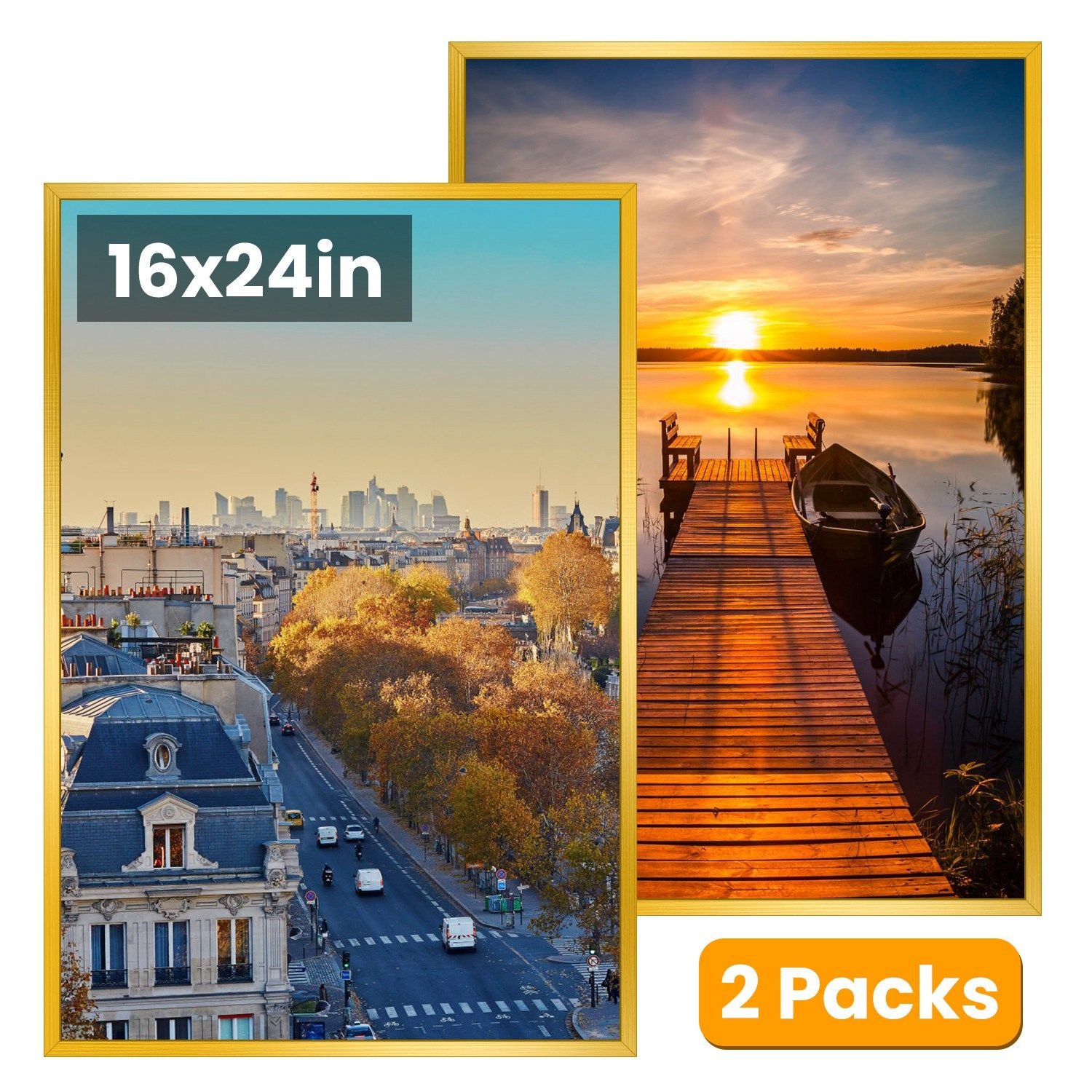 Home > 2 Packs 16x24in Picture Frames Wall Gallery Photo Frame Wall Mounted Poster Display Frame for Horizontal Vertical Wall Mounted
